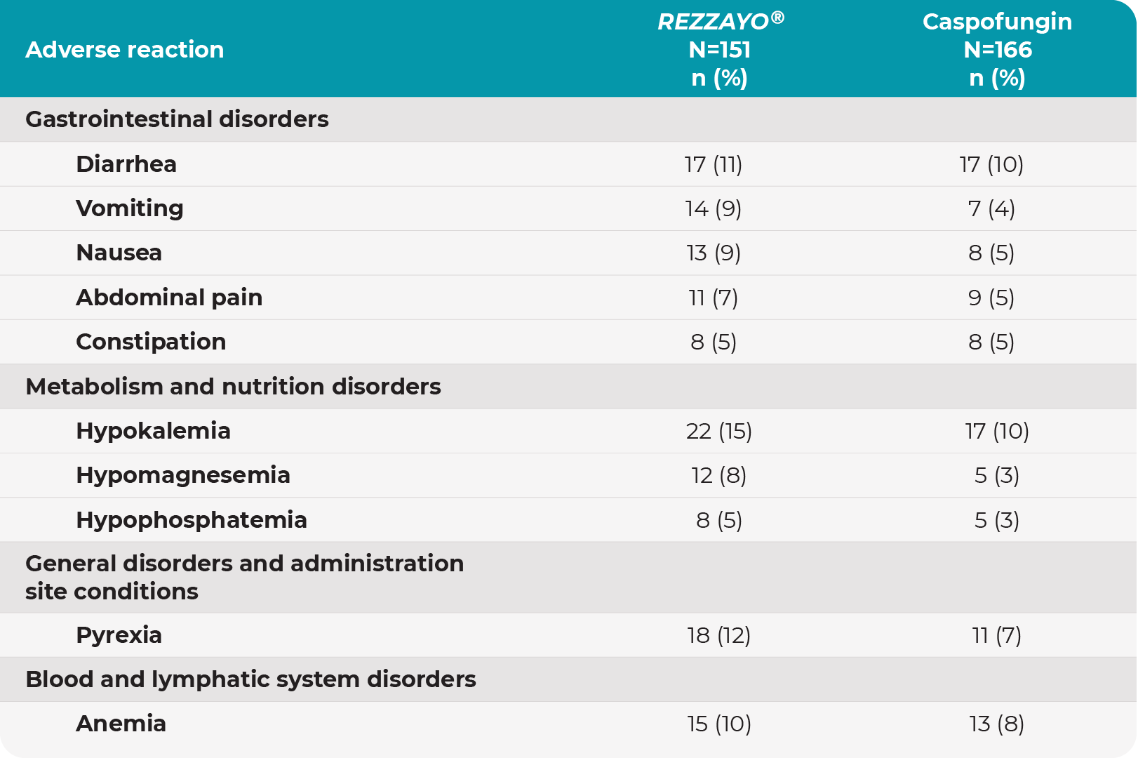 Similar rate of adverse reactions with REZZAYO® compared to caspofungin1